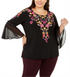 Blusa feminina plus size floral com manga sino, preta, tamanho 0X, da coleção JM
