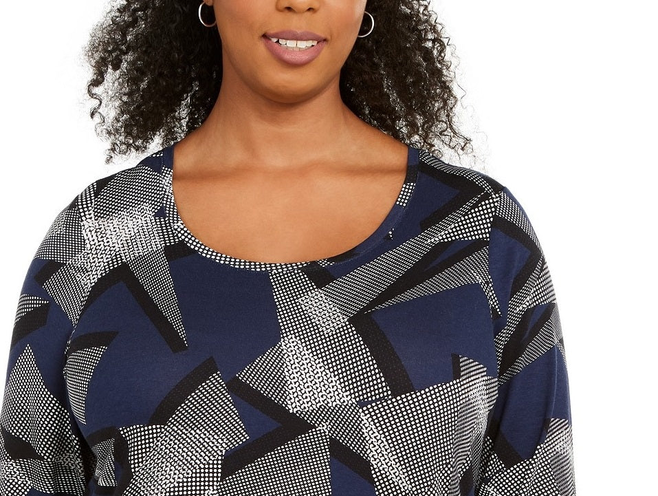 A altura aproximada da modelo é 1,78 m e ela veste tamanho 1X | Comprimento aproximado: 78 cm | Decote redondo | Mangas 3/4 | Rayon/elastano | Lavável à máquina