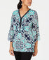 Elegantes enfeites de cristal no pescoço deste top pequeno da JM Collection adicionam definição à sua estampa sofisticada, enquanto as mangas 3/4 semitransparentes dão um toque arejado. Caimento relaxado; atinge os quadris; aprox. 25-1/2 de comprimento. Projetado para se ajustar e valorizar pessoas de 1,62 m ou menos. Decote em V. Enfeites no decote. Mangas 3/4 semitransparentes.