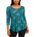JM Collection Blusa Feminina Estampada Jacquard Verde Tamanho PP