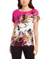JM Collection Top feminino estampado com cadarço rosa tamanho grande