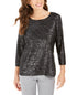 JM Collection Top Feminino Estampado em Jacquard Metálico Preto Tamanho Pequeno Médio