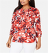 Blusa feminina estampada com pregas nas costas, tamanho XX-G, vermelha, da coleção JM