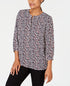 JM Collection Top feminino estampado com pregas nas costas, preto, tamanho pequeno P