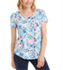 Camiseta feminina estampada com decote redondo da coleção JM, azul, tamanho médio