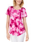 Camiseta feminina estampada com decote redondo e manga curta, tamanho extra pequeno, rosa médio, da coleção JM
