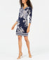Vestido estampado com tachas feminino JM Collection, azul marinho, tamanho médio