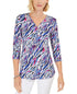 Túnica feminina estampada com zíper e gola alta, tamanho pequeno, azul, da coleção JM