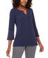 Blusa feminina com decote em V e mangas com strass, azul, tamanho P, da coleção JM