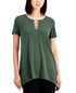 JM Collection Top feminino com bainha em lenço e anel, verde, tamanho grande