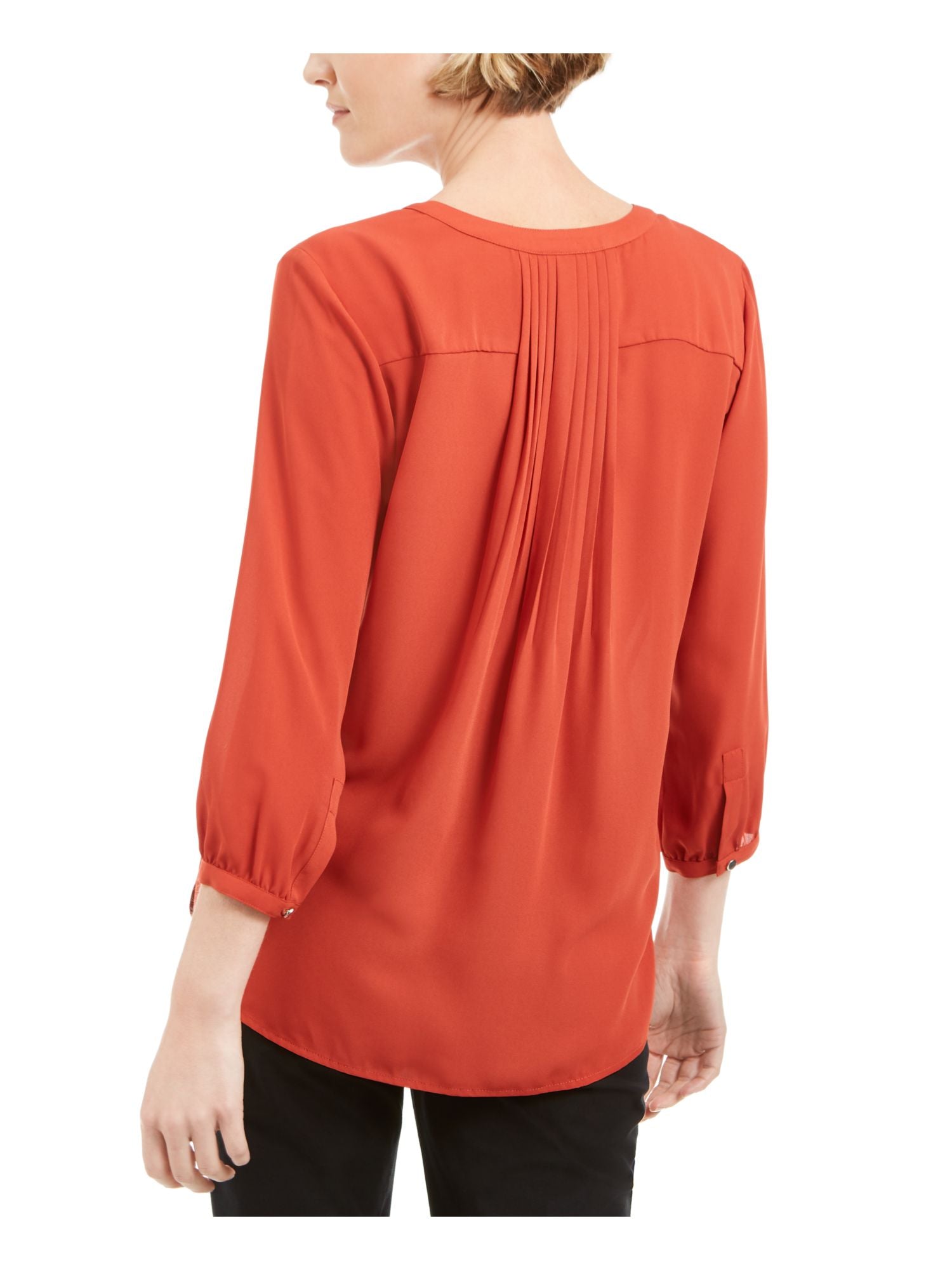 Ask a question about JM Collection Top feminino com rebites frontais e pregas nas costas, laranja, tamanho pequeno GG