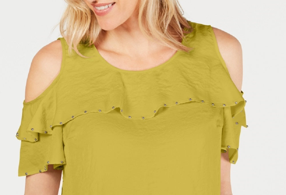 JM Collection Top feminino com babados e ombros de fora, verde, tamanho XX-G