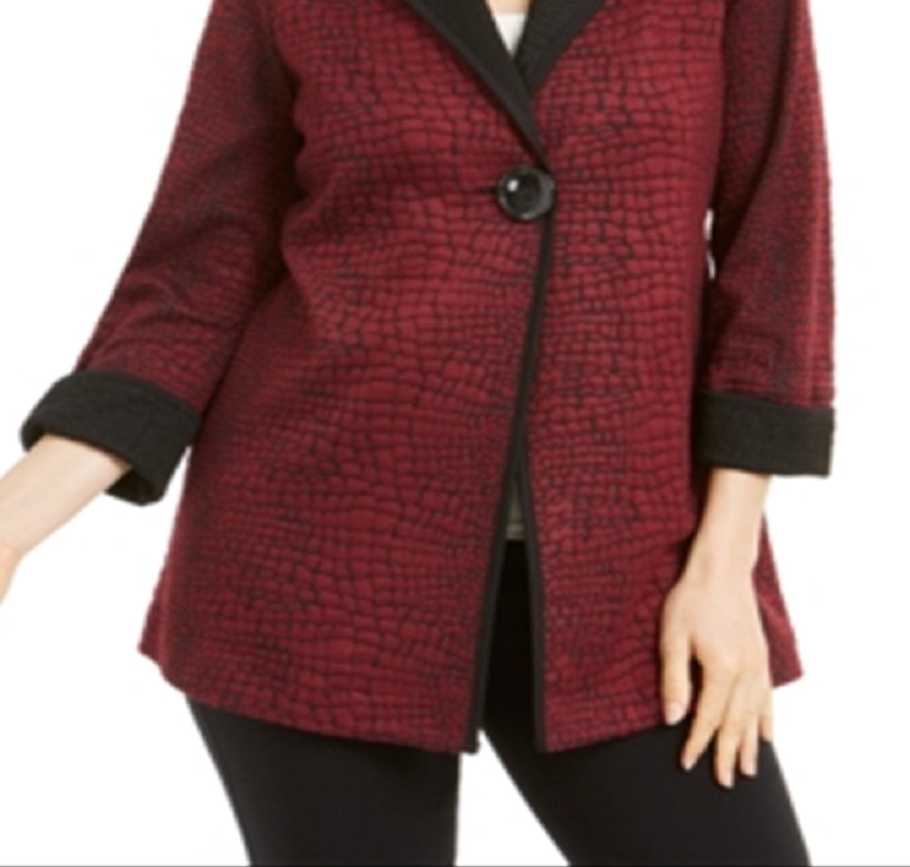 Jaqueta feminina com estampa de cobra e gola simulada, tamanho X-G, vermelha, da JM Collection