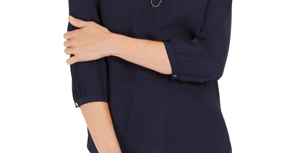 Túnica feminina JM Collection com decote aberto, azul, tamanho pequeno