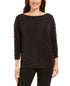 JM Collection Top Feminino Metálico com Manga Dividida e Fio Preto Tamanho Médio