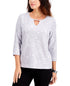 JM Collection Blusa de noite texturizada com manga 3/4 e decote em V, lilás, tamanho pequeno