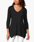 JM Collection Top feminino com decote em V e bainha em lenço, preto, tamanho extrapequeno
