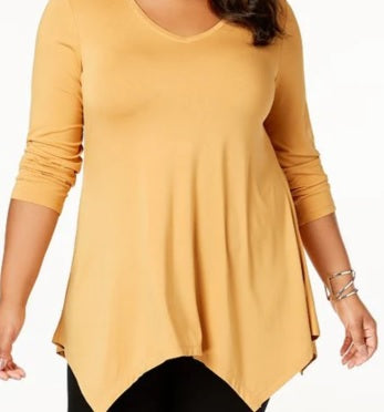 Uma bainha de lenço mais longa adorna os quadris neste top elástico confortável da JM Collection, tornando-o um ótimo básico e essencial para o guarda-roupa. Caimento relaxado; fica no quadril. Devido ao tamanho generoso, sugerimos um tamanho menor para um ajuste perfeito. Decote em V.