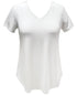 Camiseta feminina com decote em V da coleção JM, branca, tamanho pequeno