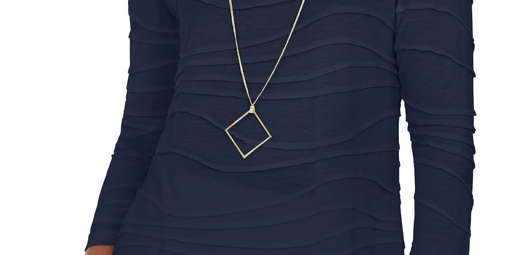 JM Collection Blusa de malha texturizada ondulada feminina, azul, tamanho XX-G