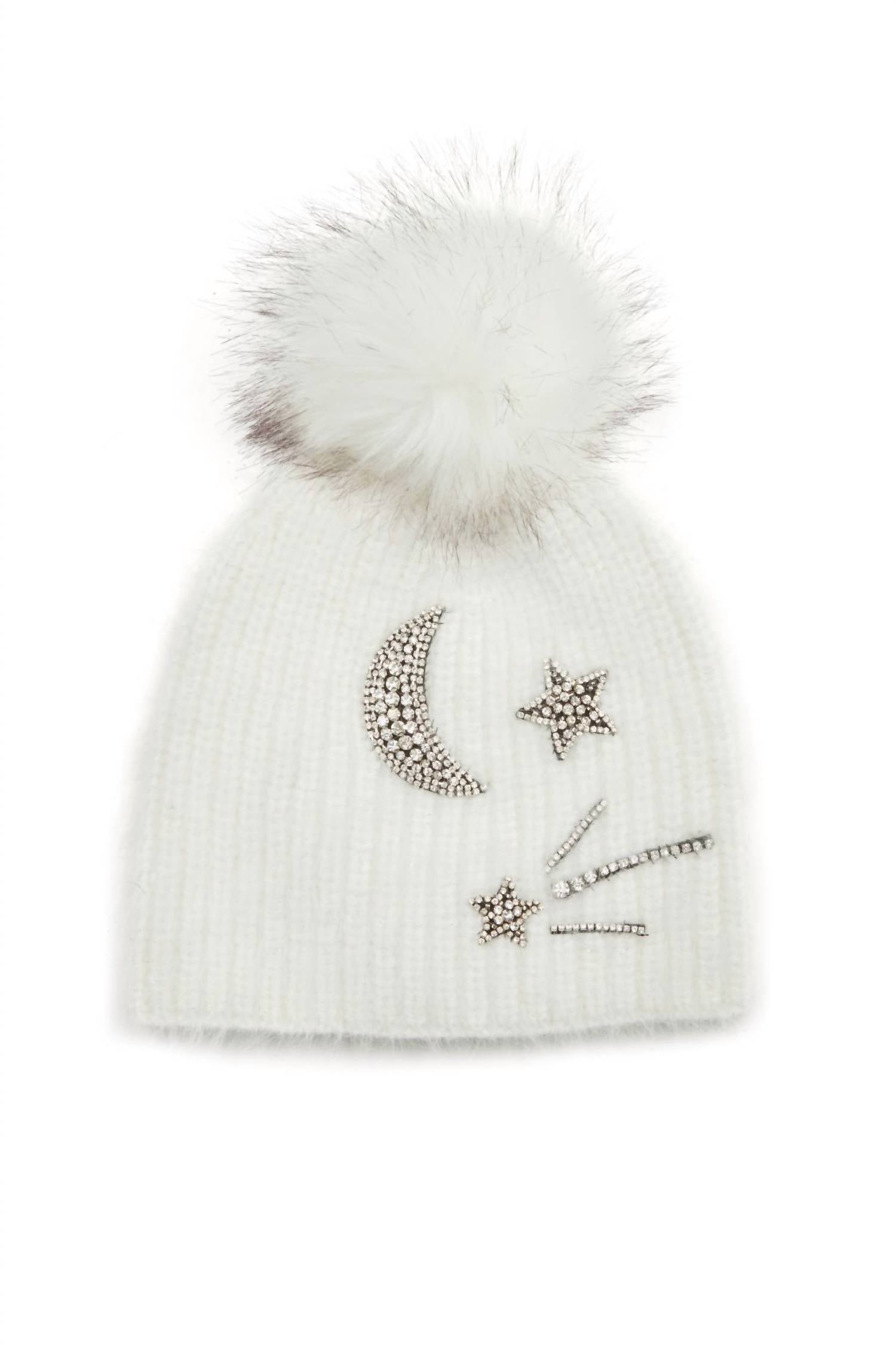 Chame a atenção com este chapéu estiloso e chique. Este acessório não é apenas essencial para proteger o rosto do sol, como também será o complemento perfeito para qualquer look fofo para o clima quente. Chapéu Lua e Estrelas. Mantenha-se aquecido e confortável neste inverno com este chapéu de pelúcia com lua e estrelas, com um detalhe de pompom. Decorado com pedras preciosas. Macio e aconchegante. Pompom de pele sintética, 55% acrílico, 45% nylon, 72% acrílico, 21% modacrílico, 7% poliéster. Lavar à mão. Importado.