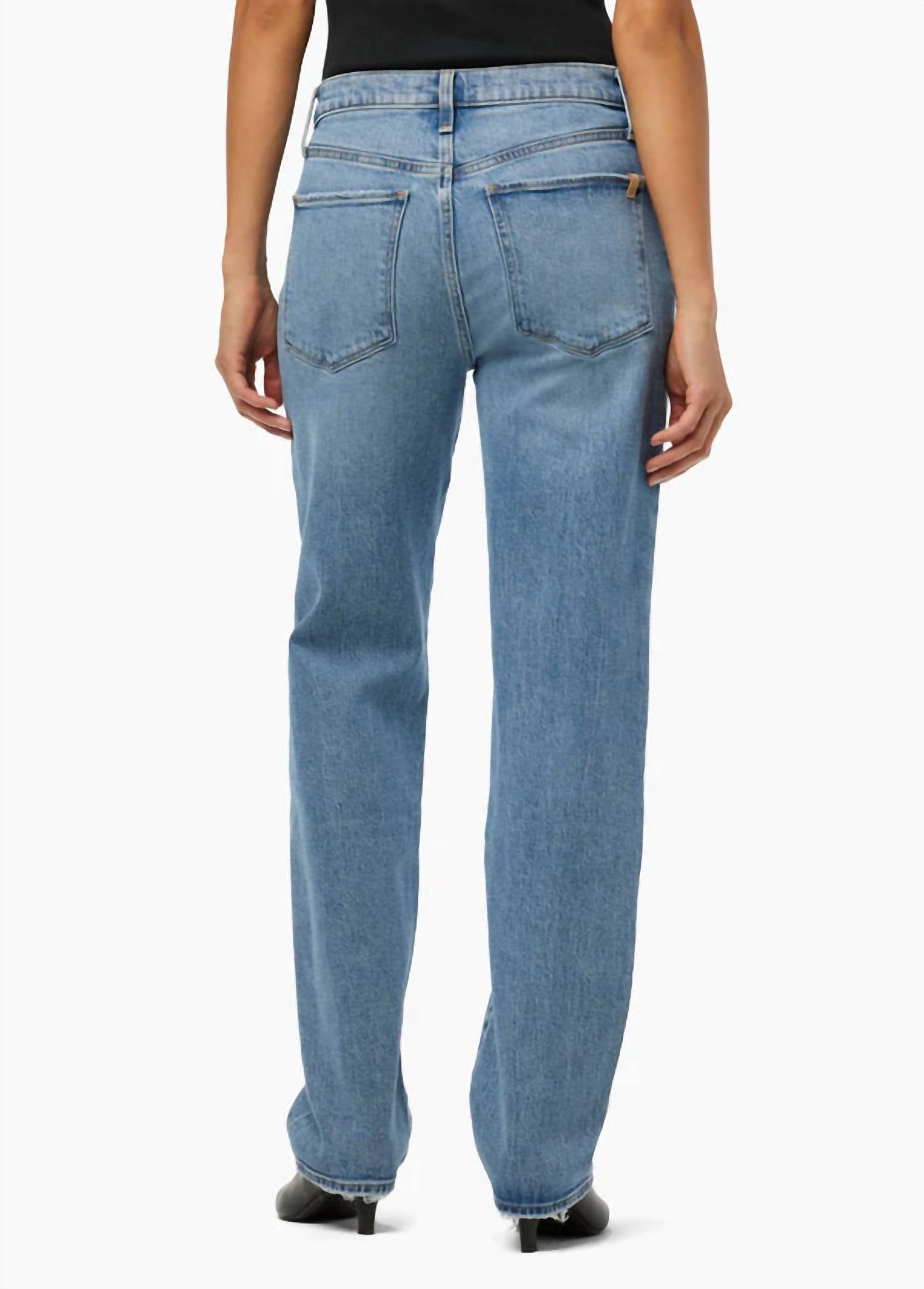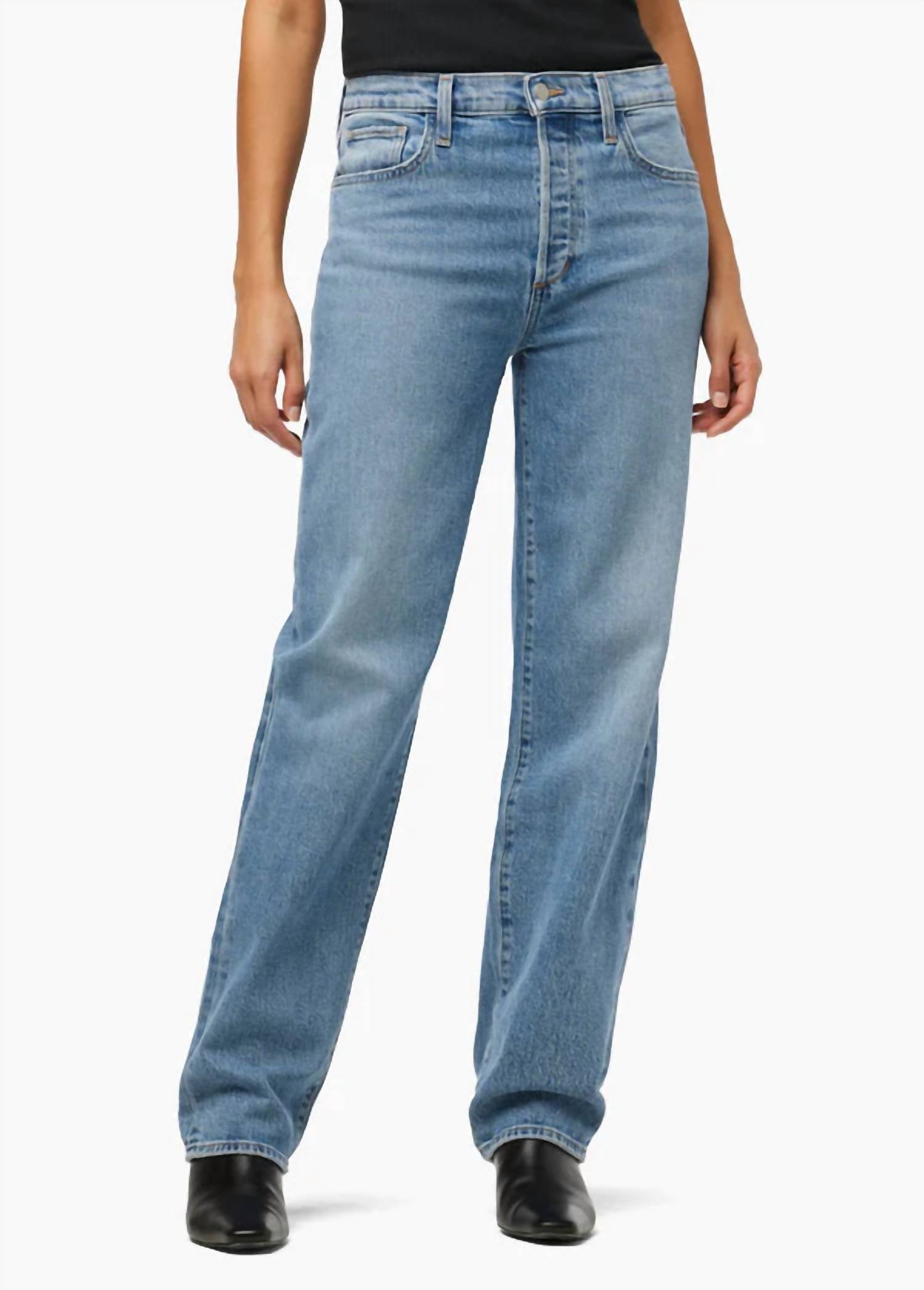 Esses jeans indispensáveis ​​têm um caimento perfeito. Aposte em um look atemporal com a calça jeans Niki dos anos 90 da Joe's Jeans, confeccionada em uma mistura de algodão resistente em um tom azul clássico. Com caimento solto e cintura média, esta calça jeans possui 78 cm de comprimento, perfeita para uma silhueta descontraída e estilosa. O design reto complementa a estampa lisa, enquanto o fecho de botão adiciona um toque de charme vintage. Ideal para qualquer passeio casual, esta calça jeans possui bolsos práticos e combina perfeitamente com uma variedade de blusas.