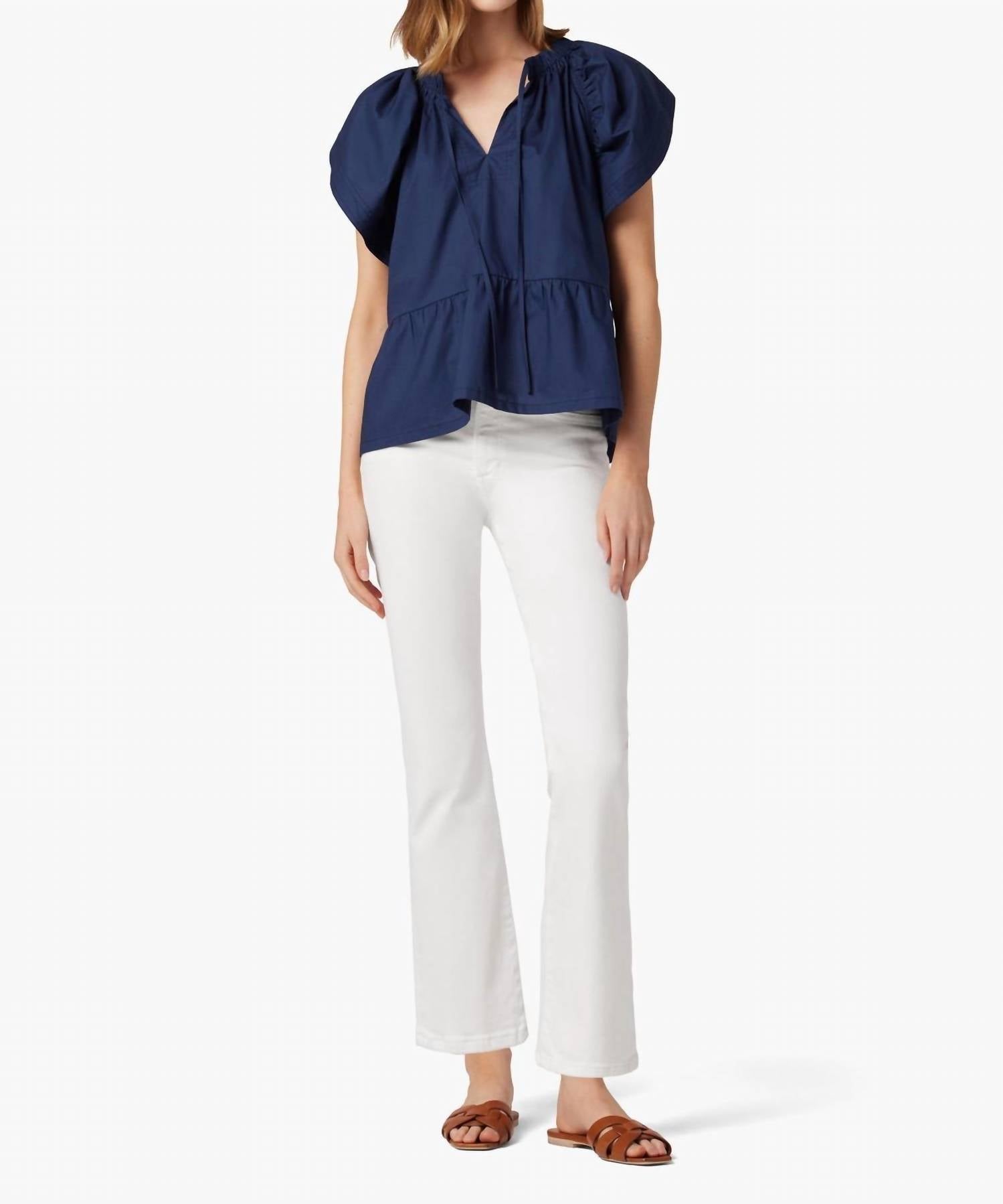 Descubra a Calça Jeans Cropped Boot Callie High Rise da Joe's Jeans, uma opção estilosa de cintura alta em branco óptico, perfeita para a primavera. Com 25 cm de altura e 67 cm de costura interna, esta calça jeans apresenta uma mistura de algodão: 90% algodão, 8% poliéster Repreve e 2% elastano para elasticidade e conforto ideais. Apresenta corte regular, perna larga e bolsos. Fechamento: Botão. Ideal para ocasiões de noivado e para adicionar um toque moderno de workwear ao seu guarda-roupa.