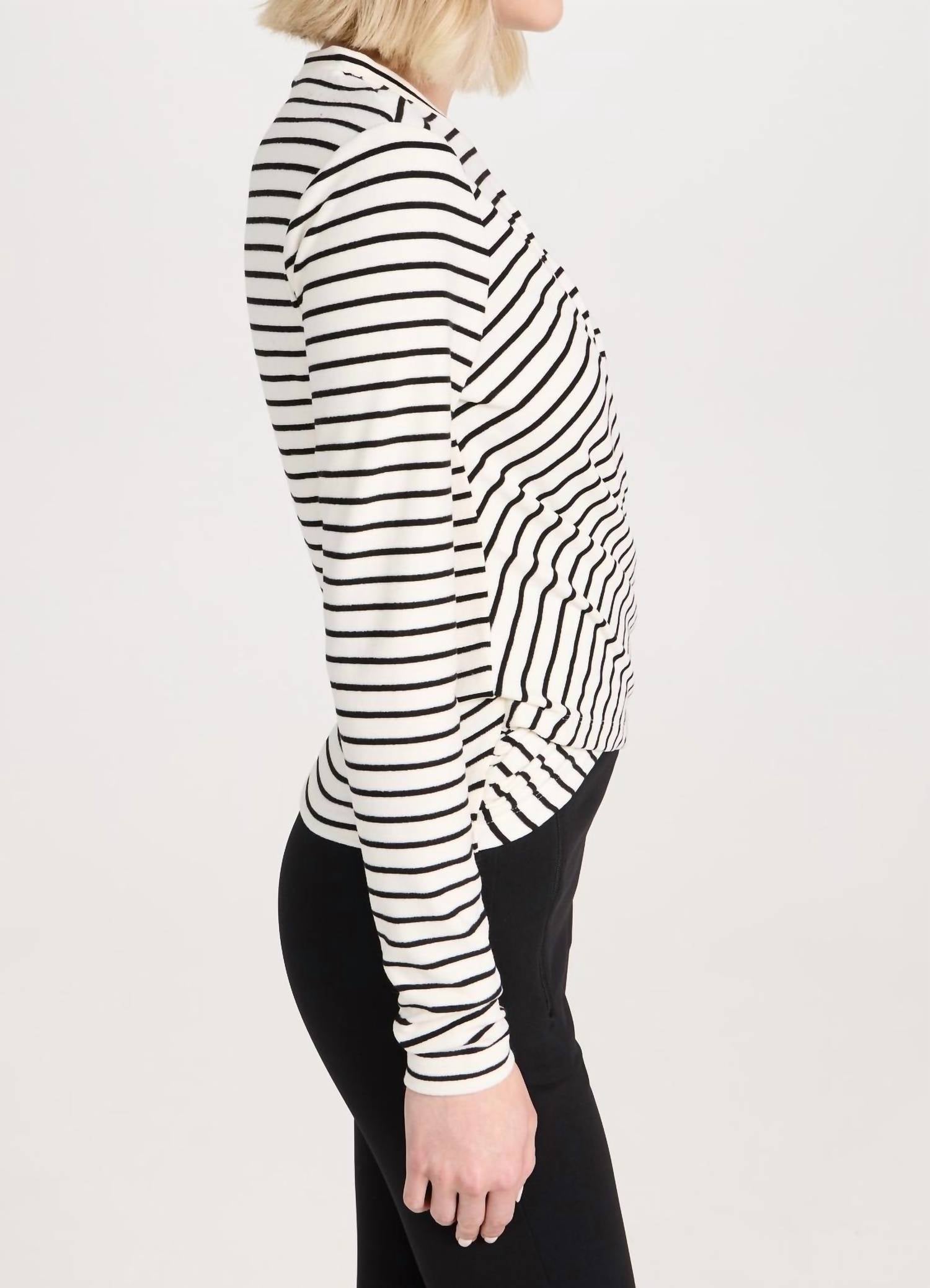 Caimento perfeito, design charmoso, tecido macio. Você vai adorar tudo nesta camiseta de manga comprida. Esta peça de manga comprida é confeccionada em malha fleece ultramacia de peso médio, com decote redondo clássico e corpete franzido com um marcante padrão de listras bretãs. Confeccionada em 95% poliéster e 5% elastano, oferece um fechamento fácil por cadarço. Importada da China, esta peça mede 54 cm de comprimento. Lavar à máquina com água fria.