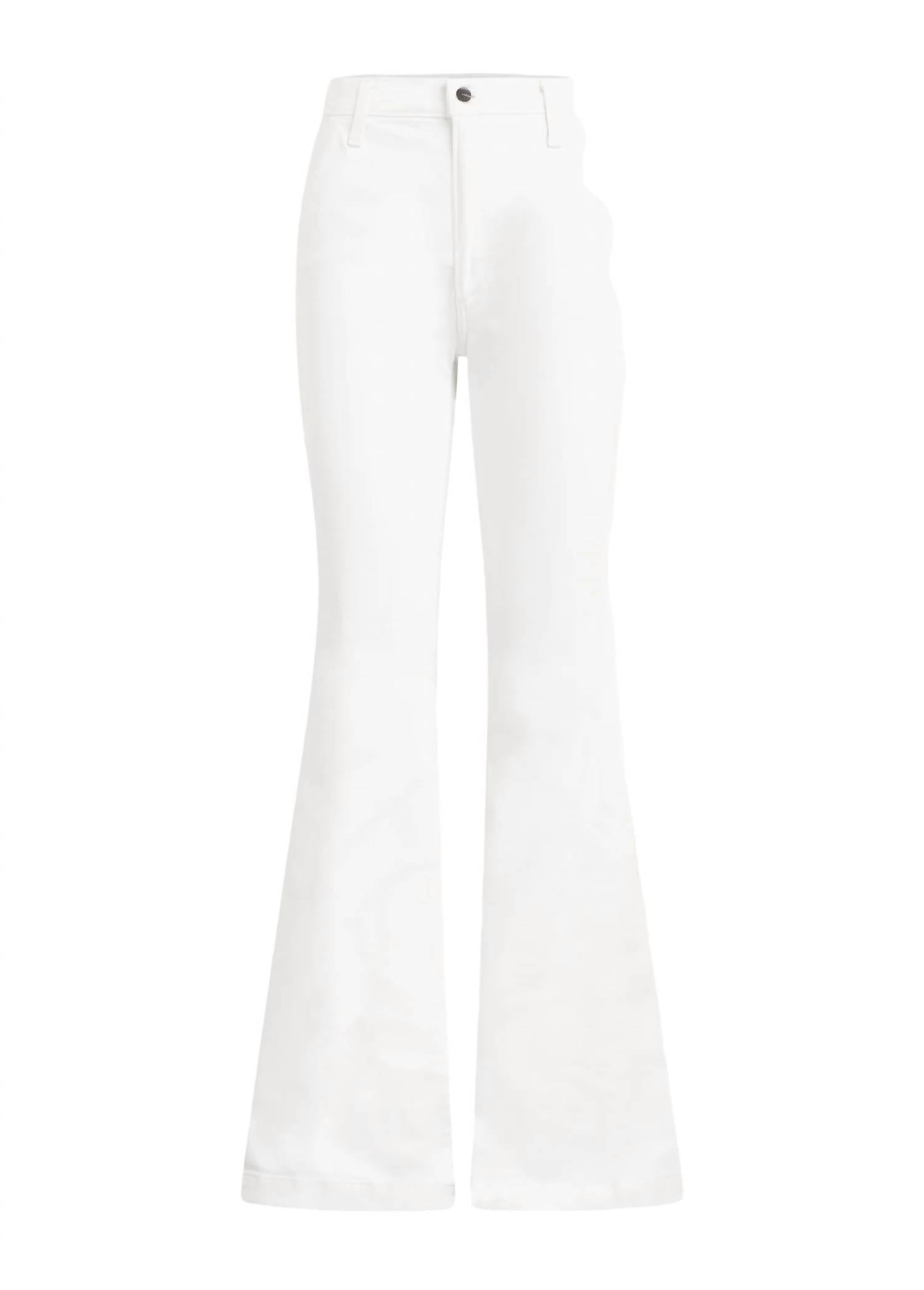 Tão fofa quanto confortável. Esta calça flare de cintura alta é ajustada na cintura e alarga na bainha larga. Ela é confeccionada em jeans com elastano em uma lavagem escura e possui bolsos frontais inclinados. Confeccionada em 93% algodão, 6% elastomultiéster e 1% elastano, oferece conforto e flexibilidade. As medidas incluem 26 cm de comprimento frontal, 37 cm de comprimento traseiro, 58 cm de comprimento na perna e 86 cm de comprimento na costura interna. A modelo veste tamanho 26. Para cuidados, lave na máquina em água fria.