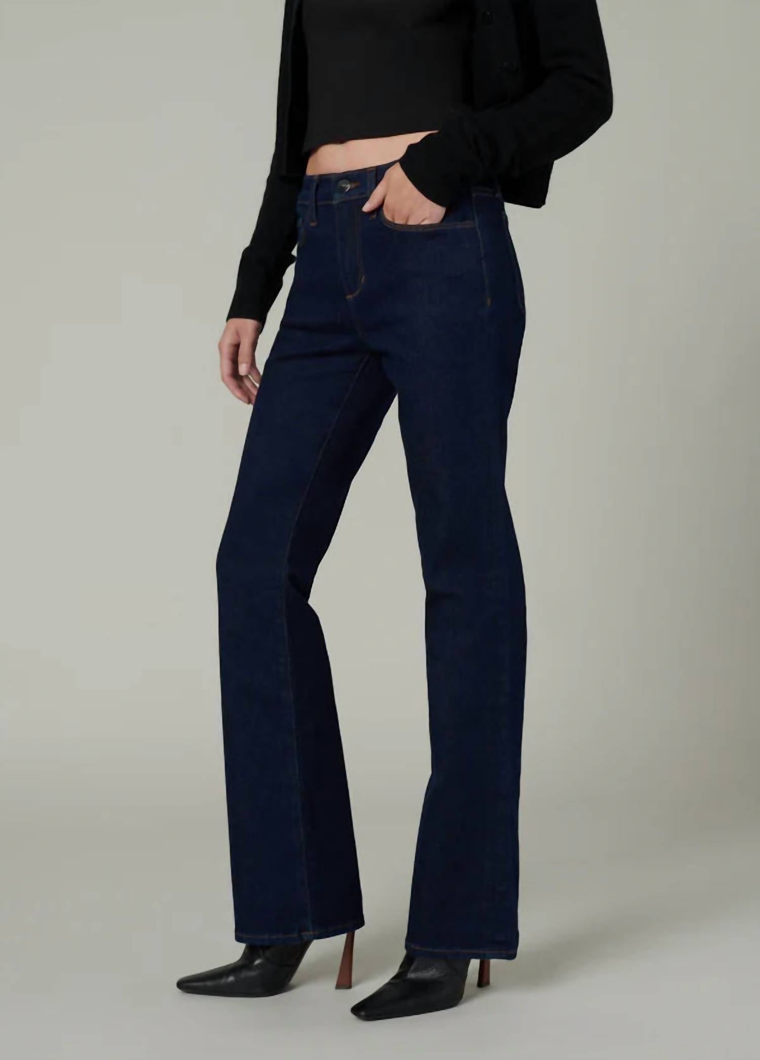 Basta adicionar botas! Confeccionada em uma mistura de algodão altamente elástica que se adapta ao seu corpo sem deformar. Com 76 cm de costura interna, esta calça jeans apresenta um padrão sólido na elegante lavagem escura "After Party", proporcionando um visual sofisticado com pespontos contrastantes. O corte slim e o cós médio são complementados por uma perna estilo bootcut e bolsos funcionais. O fechamento é por botão. Fácil de limpar, com instruções de lavagem à máquina.