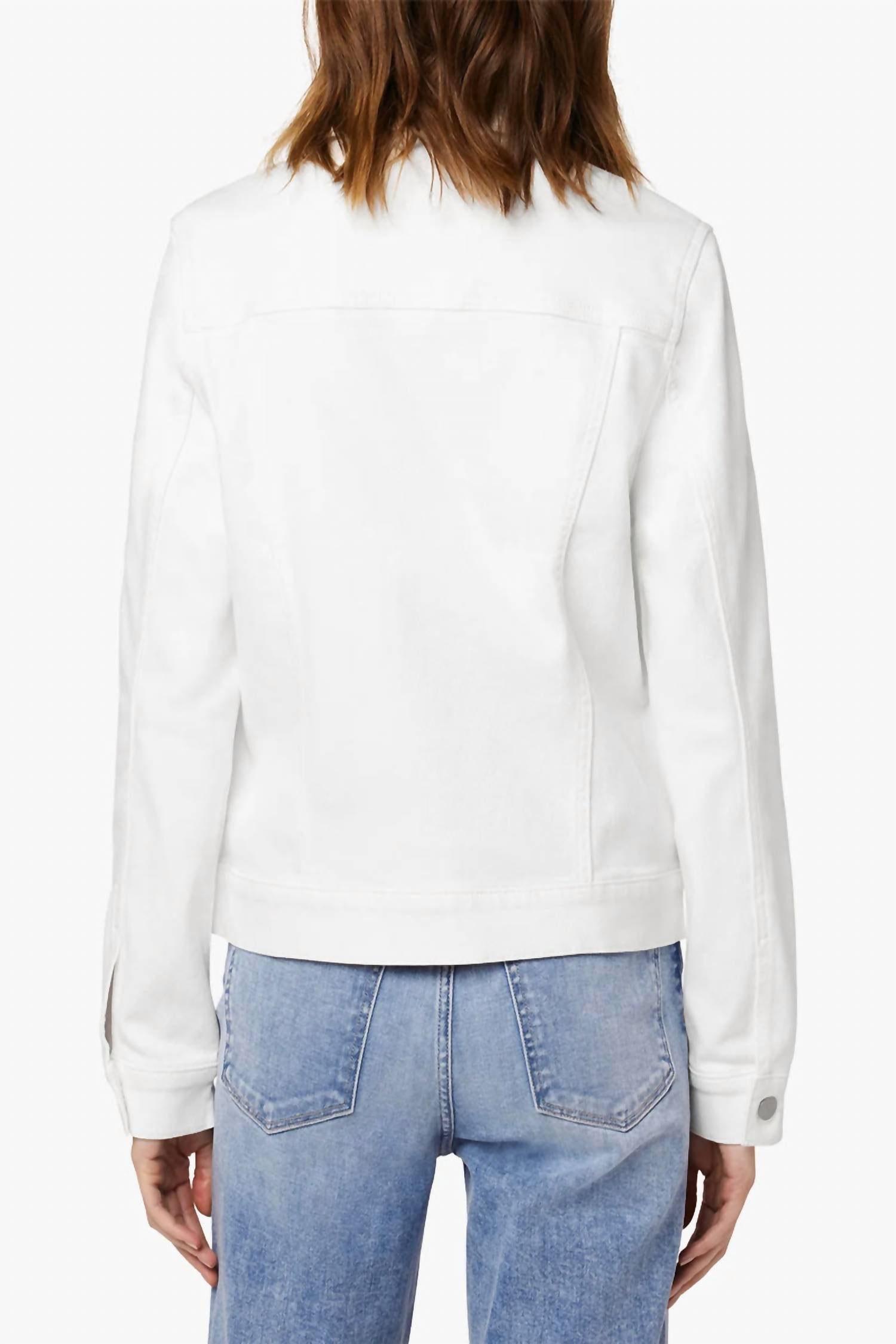 Apresentamos a Jaqueta Jeans Relaxed da Joe's Jeans, uma peça essencial em branco clean, projetada para um estilo despojado. Esta jaqueta feminina possui mangas compridas, gola alta e estampa lisa, complementada por bolsos práticos e fecho de botão. Confeccionada em uma mistura de algodão confortável, oferece um caimento perfeito com um toque de elasticidade para maior conforto. Perfeita para usar em camadas, esta jaqueta combina o charme clássico do jeans com o conforto moderno. A MODELO ESTÁ USANDO TAMANHO P