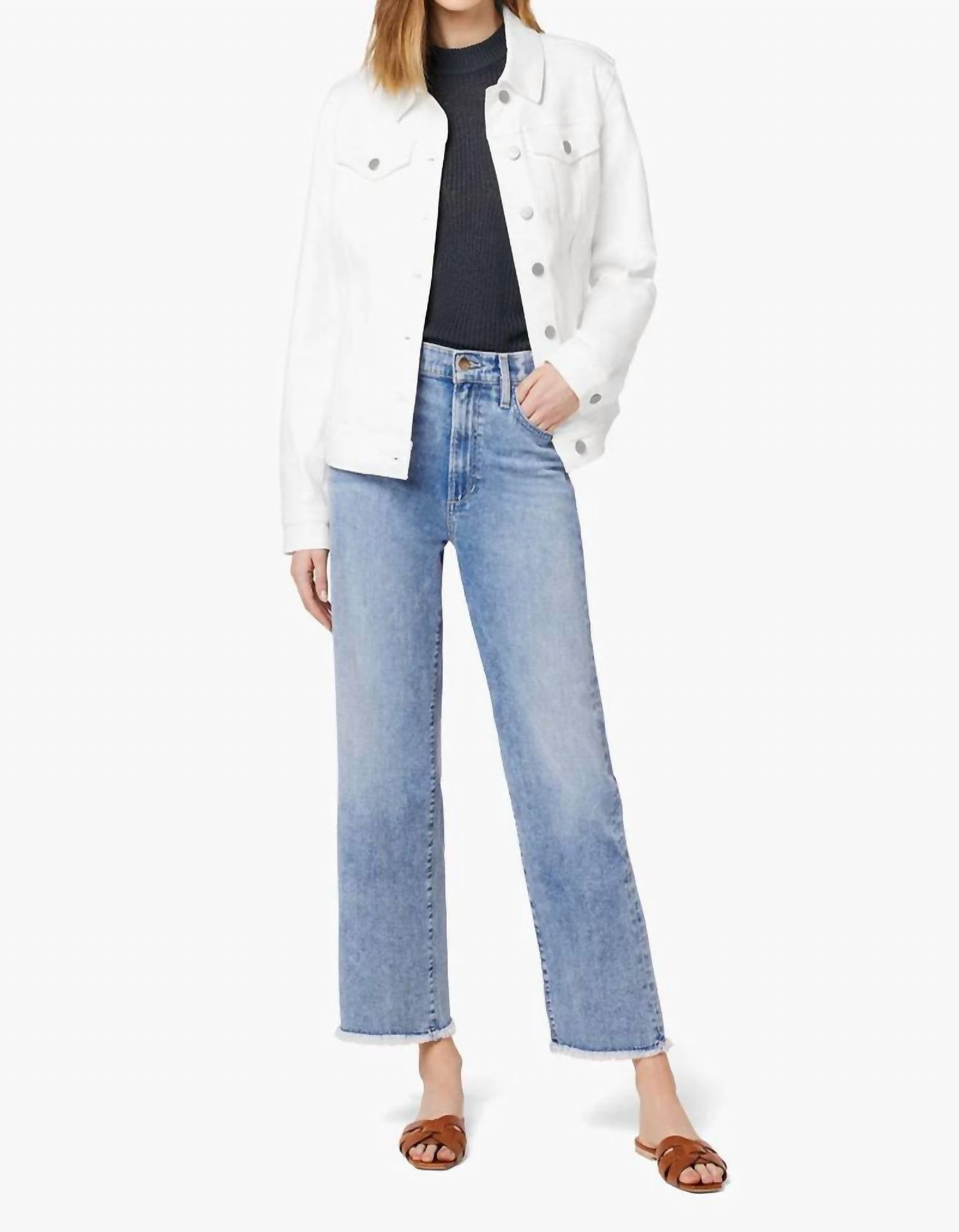 A jaqueta jeans perfeita para aqueles dias um pouco mais frios entre as estações. Apresentamos a Jaqueta Jeans Relaxed da Joe's Jeans, uma peça essencial em branco clean, projetada para um estilo despojado. Esta jaqueta feminina possui mangas compridas, gola alta e estampa lisa, complementada por bolsos práticos e fecho de botão. Confeccionada em uma mistura de algodão confortável, oferece um caimento perfeito com um toque de elasticidade para maior conforto. Perfeita para usar em camadas, esta jaqueta combina o charme clássico do jeans com o conforto moderno. A MODELO ESTÁ USANDO TAMANHO P