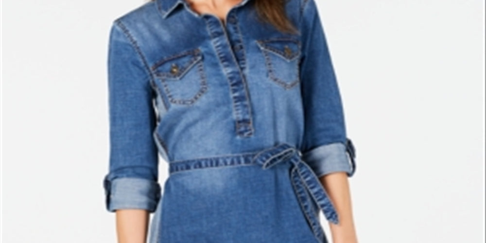 Jones Apparel Vestido feminino com bolsos, gola alta, manga comprida, tamanho 0, azul