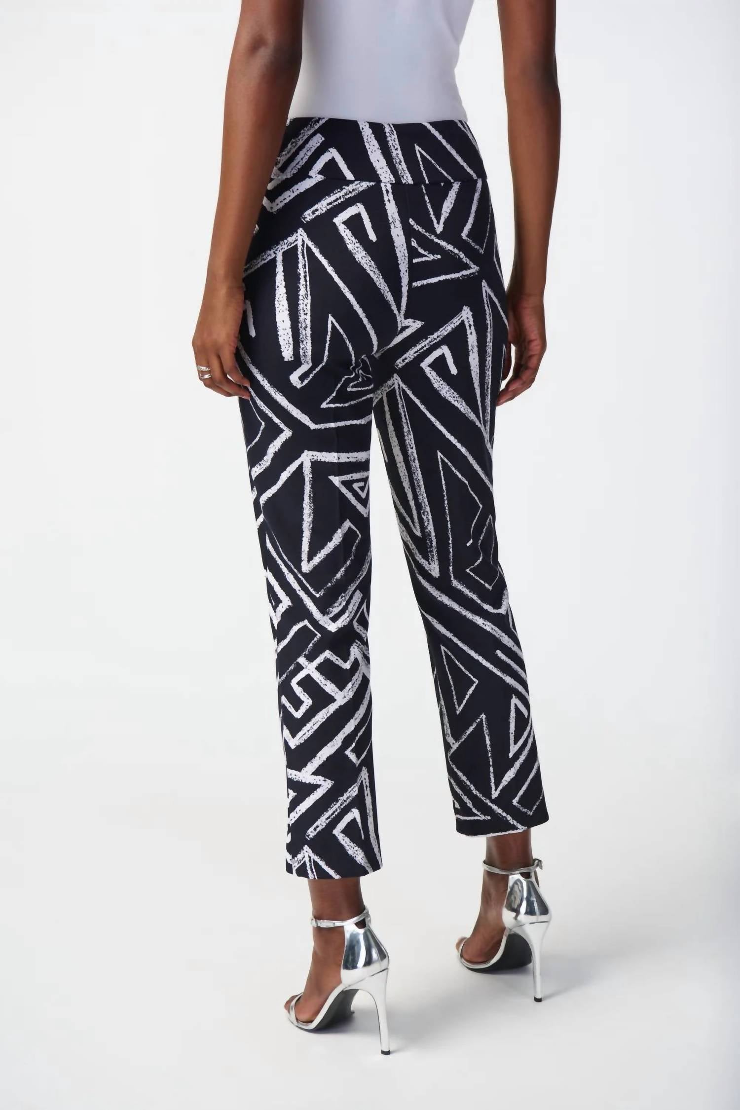 Mantenha-se na moda e exiba seu gosto impecável com estas calças cropped adaptáveis e estilosas. O comprimento perfeito para usar com suas mules favoritas. Você vai adorar o caimento! Incremente seu guarda-roupa com a Calça Abstract da Joseph Ribkoff, com uma estampa geométrica marcante em preto e branco. Esta calça cropped é composta por 95% poliéster e 5% elastano, proporcionando um toque confortável e sedoso. O modelo pull-on com cós estruturado cria uma mistura perfeita de praticidade e elegância. As instruções de cuidado especificam lavar à mão em água fria com cores semelhantes, pendurar para secar à sombra e passar a ferro em temperatura baixa, se necessário.