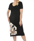 Elevate your wardrobe with the Abstract Print Short Sleeve Midi Cocoon T-shirt Dress by Joseph Ribkoff, a masterpiece in black/multi featuring a chic blocked abstract print. This sophisticated dress has short sleeves and a scoop neckline, enhanced by a cocoon hem that gracefully extends past the knee. Crafted from 96% polyester and 4% spandex in Canada, it offers a modern, relaxed fit with the convenience of side pockets. The pull-on style ensures easy wear, and it requires hand washing in cold water; lay flat to dry.