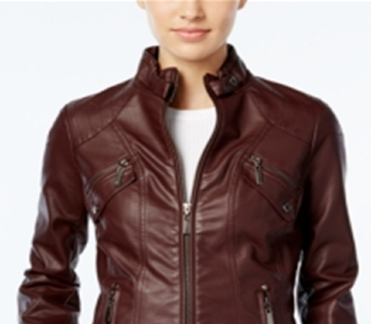 A jaqueta de couro sintético da Jou Jou eleva seu estilo diário a um novo patamar e lhe dá um toque de estilo instantaneamente com sua gola de faixa e detalhes de jaqueta de couro sintético! | Gola de faixa com fecho de fivela e aba | Fecho de zíper na frente | Mangas compridas; detalhe de zíper nos punhos | Bolso com zíper na cintura e no peito; bolso com botão falso no peito | Corpo de couro sintético | Forrado