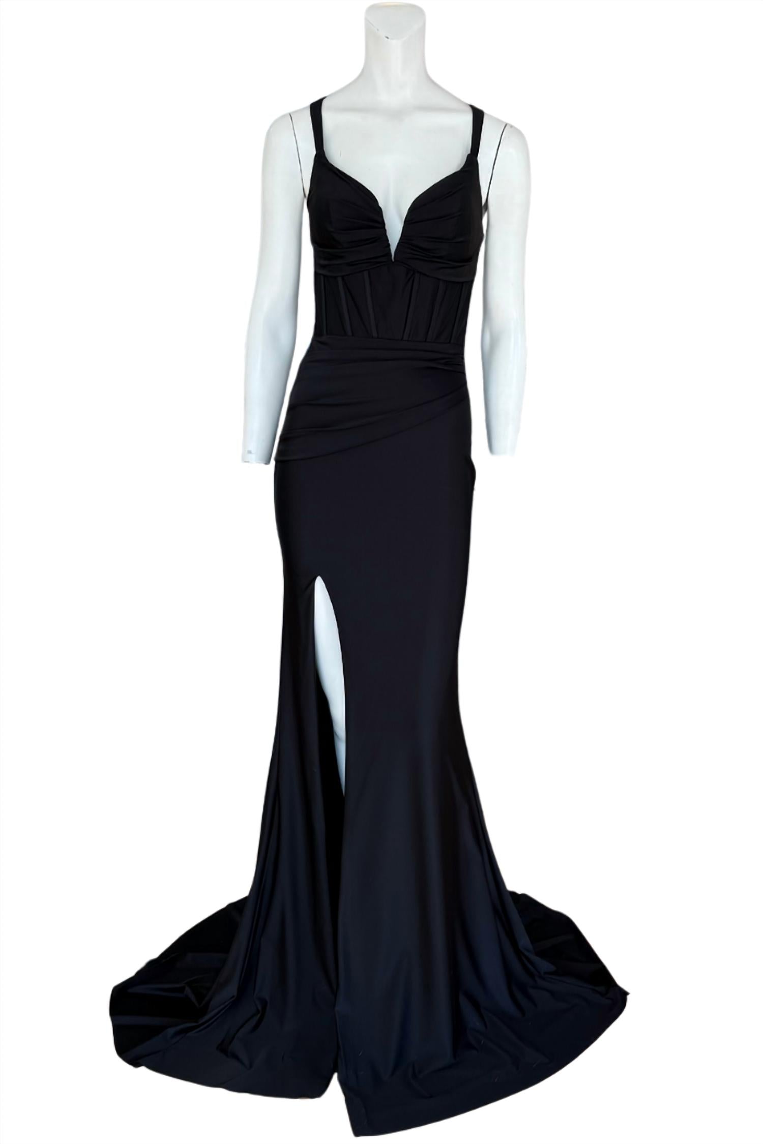 Combine este maxi com seu colar e sandálias favoritos para um look perfeito. Este deslumbrante vestido tomara que caia Jovani modelo 5027 esbanja elegância com seu comprimento longo e corpete franzido requintado que valoriza a silhueta. O vestido apresenta uma fenda alta ousada, adicionando um toque de charme e sofisticação. O design com costas abertas é acentuado por uma única alça, criando um visual cativante e sensual, perfeito para qualquer ocasião formal.