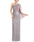 Positivamente deslumbrante | em duas texturas e tons; malha bordada e chiffon fluido combinam no estilo assimétrico cativante deste vestido formal da JS Collections. | Decote assimétrico; Silhueta do vestido | Zíper oculto no centro das costas | Importado | Forrado | Sobreposição de corpete assimétrico transparente com torção no quadril e uma manga longa larga
