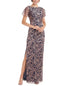 Mangas esvoaçantes plissadas com um pequeno bufante extra dão um toque de estilo sério à silhueta elegante deste vestido ricamente bordado da JS Collections. Com certeza, ele fará uma entrada elegante em um casamento ou evento noturno. | Tecido de malha bordado por toda a peça | Importado | Decote joia; Silhueta do vestido | Vestido formal longo | Mangas curtas esvoaçantes com acabamento em vieiras | Fecho de zíper oculto no centro das costas