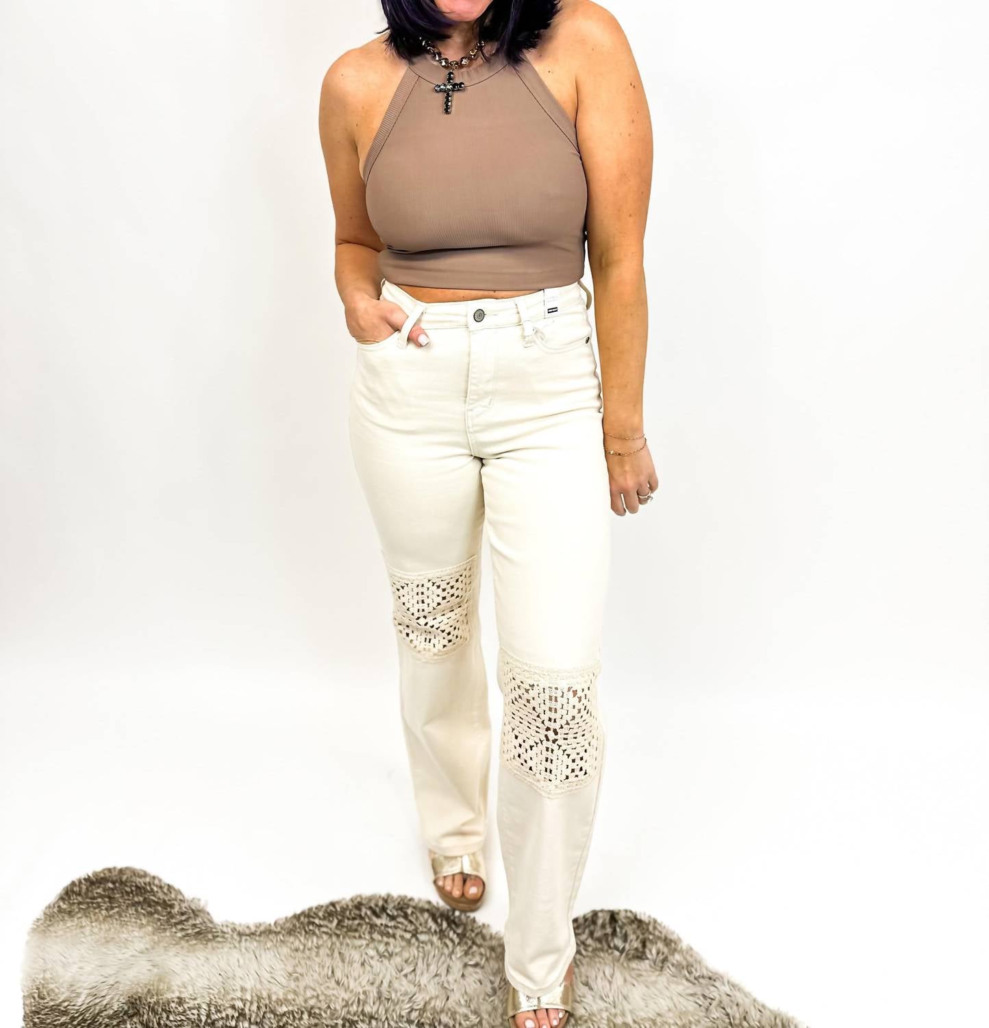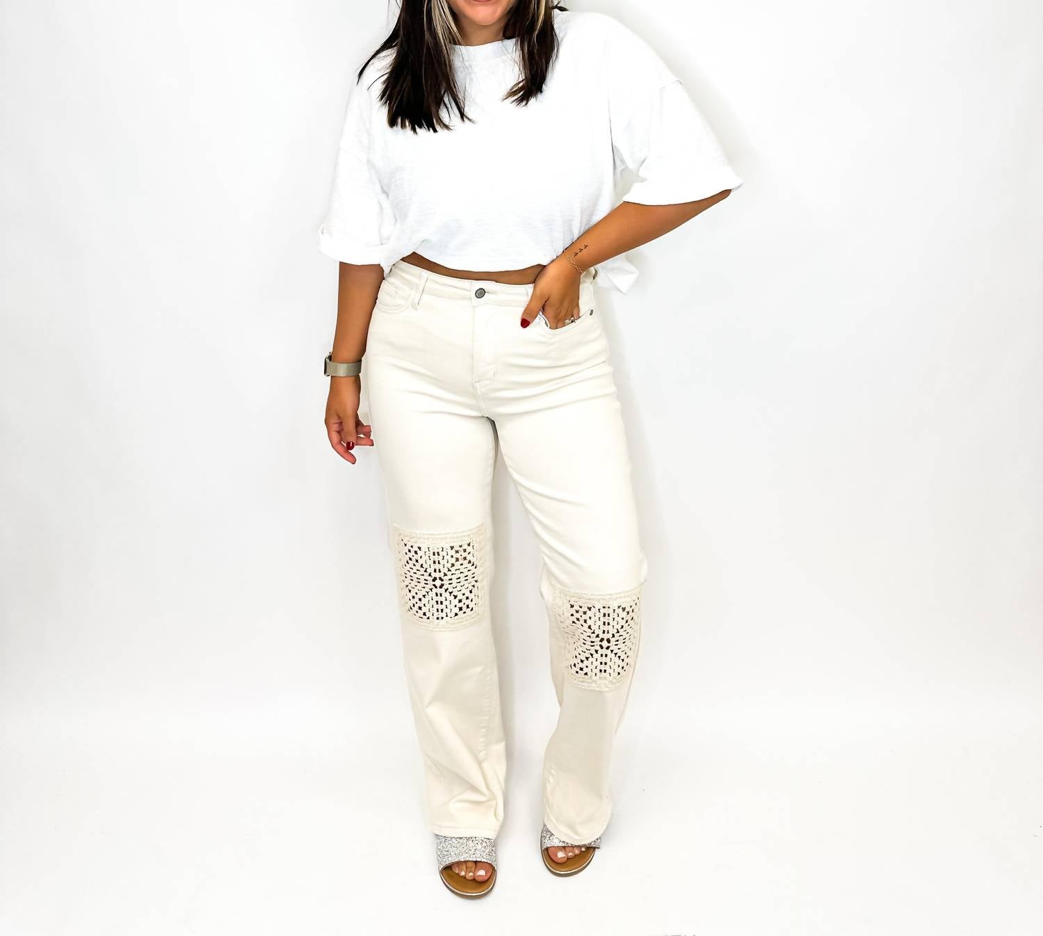 Esses jeans indispensáveis ​​têm um caimento perfeito. Abrace a vibe boho com a calça jeans Blue Patch Me da Judy Blue, criada para valorizar o corpo com corte reto em tom off-white. Com fecho de botão e detalhes elegantes em patchwork, esta calça cria a ilusão de comprimento e elegância. Com 26 cm de altura para o corte regular e 30 cm para o corte curvilíneo, além de 78 cm de costura interna, ela promete um caimento fiel ao corpo em diversos tamanhos. Perfeita para um estilo versátil, esta calça jeans vem com bolsos práticos e é ideal para quem busca conforto sem abrir mão do estilo.