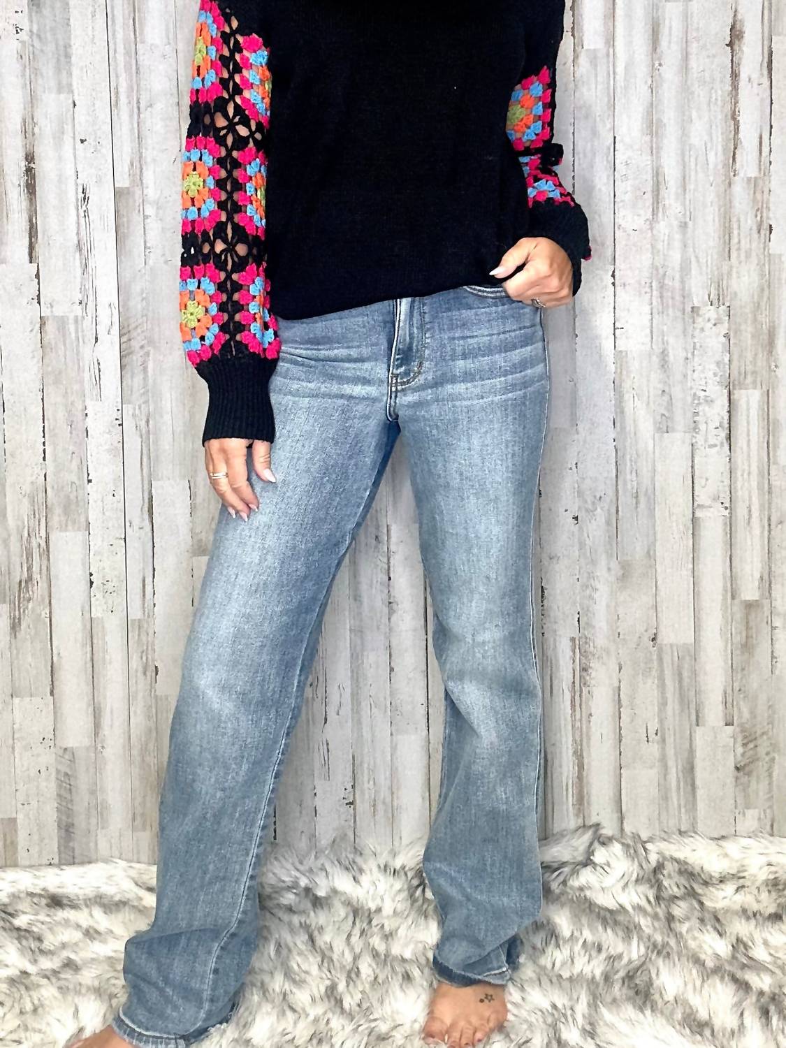 Combine esta calça jeans reta com sapatilhas, sandálias ou até mesmo saltos! Não tem como errar. Eleve sua coleção de jeans com a calça jeans Charlie Dad da Judy Blue, uma mistura perfeita de estilo dos anos 90 e funcionalidade moderna. Esta calça jeans reta com lavagem média apresenta cintura média com estampa texturizada e bainha desfiada, tendência da moda, além de fecho prático de botão e bolso para celular. Confeccionada em uma mistura macia de algodão (93% algodão, 6% poliéster e 1% elastano), esta calça garante conforto e estilo. O cuidado é fácil, com instruções de lavagem à máquina com água fria e secagem em temperatura baixa, tornando-a a escolha ideal para viagens e uso diário.