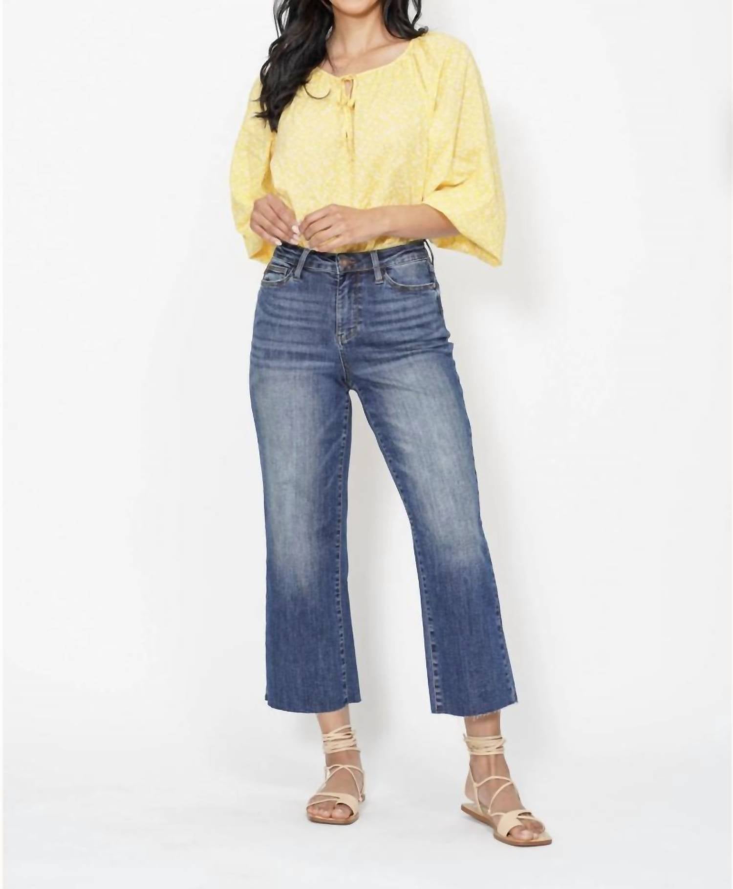 Combine esta calça jeans de perna larga com mules, slides ou suas sandálias de tiras favoritas. Esta calça jeans flare e de perna larga apresenta um padrão sólido com bolsos funcionais para maior praticidade. Confeccionada para mulheres e com bainhas cruas, ela oferece um visual moderno e elegante. As instruções de cuidado são simples: lavar na máquina e secar na horizontal.