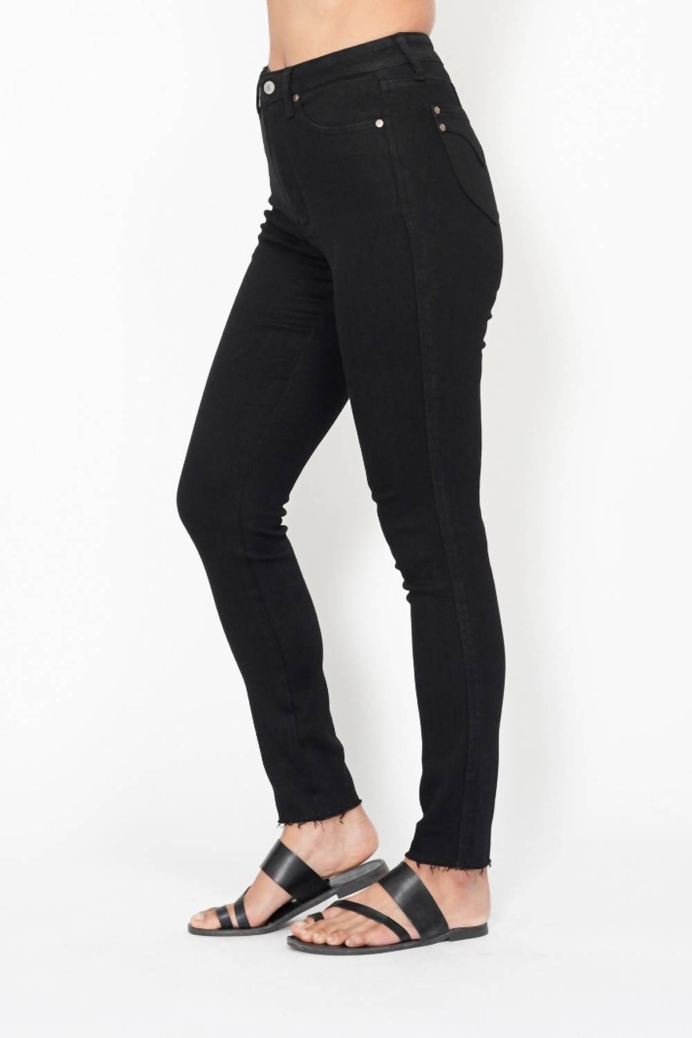 Eleve seu guarda-roupa com a Calça Jeans Skinny Got Game H/W Tummy Control da Judy Blue, confeccionada em uma mistura de algodão que inclui 69% algodão, 23% poliéster, 7% rayon e 1% elastano para um ajuste confortável. Esta calça jeans preta de cintura alta apresenta um design skinny elegante e um bolso exclusivo que valoriza a silhueta. Com um caimento relaxado e uma costura interna de 73 cm, esta calça jeans vem completa com fecho de botão. Perfeita para qualquer ocasião, esta calça combina estilo com funcionalidade e foi desenvolvida para mulheres.