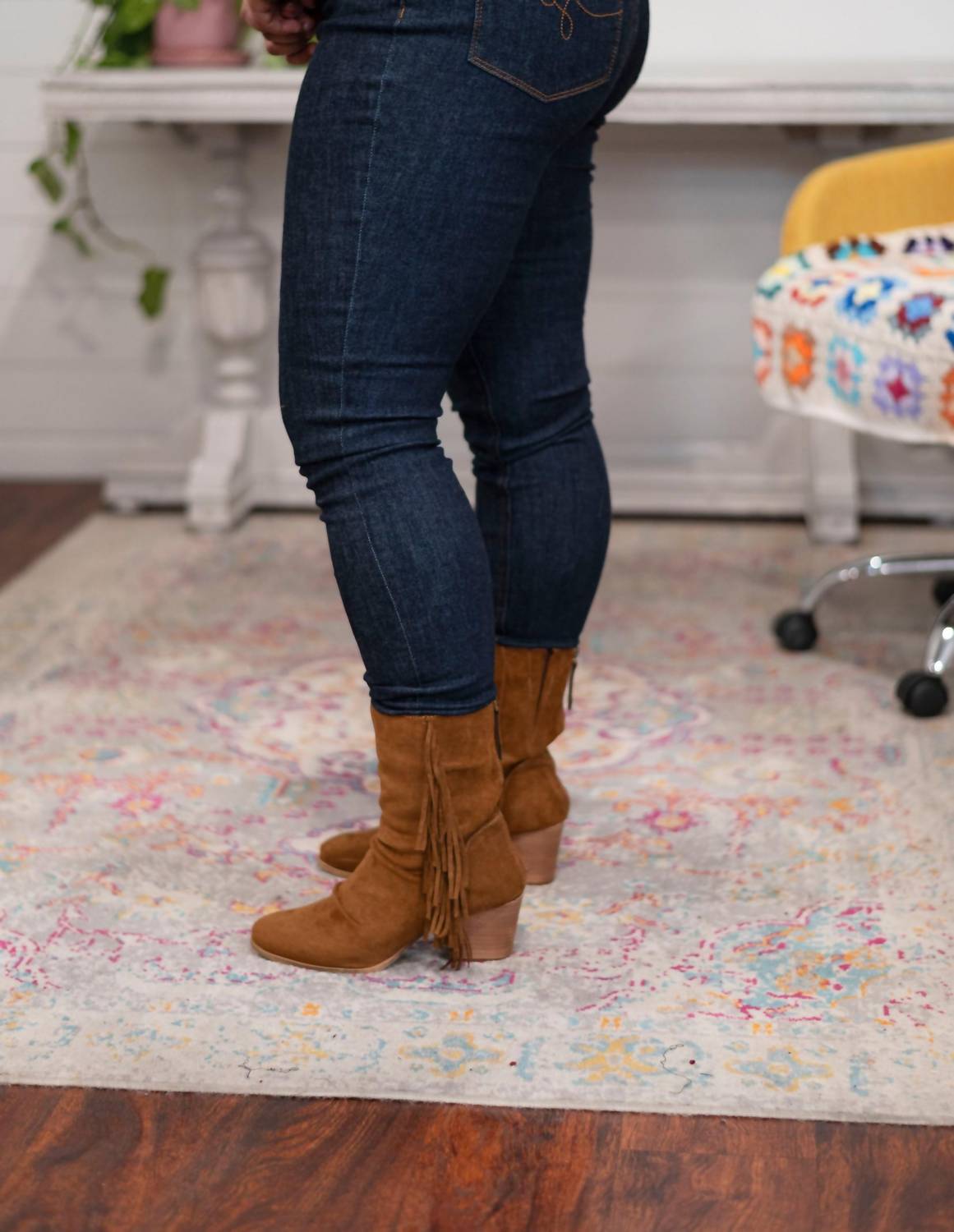A calça jeans skinny perfeita para usar com suas botas favoritas nesta estação! Esta calça jeans skinny de cintura alta e lavagem escura apresenta costuras contrastantes, bolsos traseiros bordados e um design tradicional de 5 bolsos com braguilha com zíper. Disponível nos tamanhos júnior e feminino, ela tem 30 cm de altura e 73 cm de costura interna, e é feita de 91% algodão, 7% poliéster e 2% rayon. Gio tem 1,57 m e veste tamanho 39.