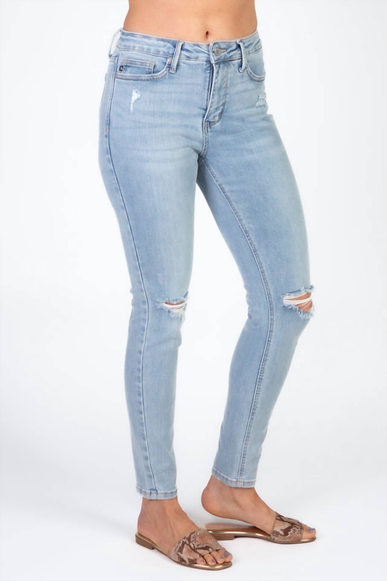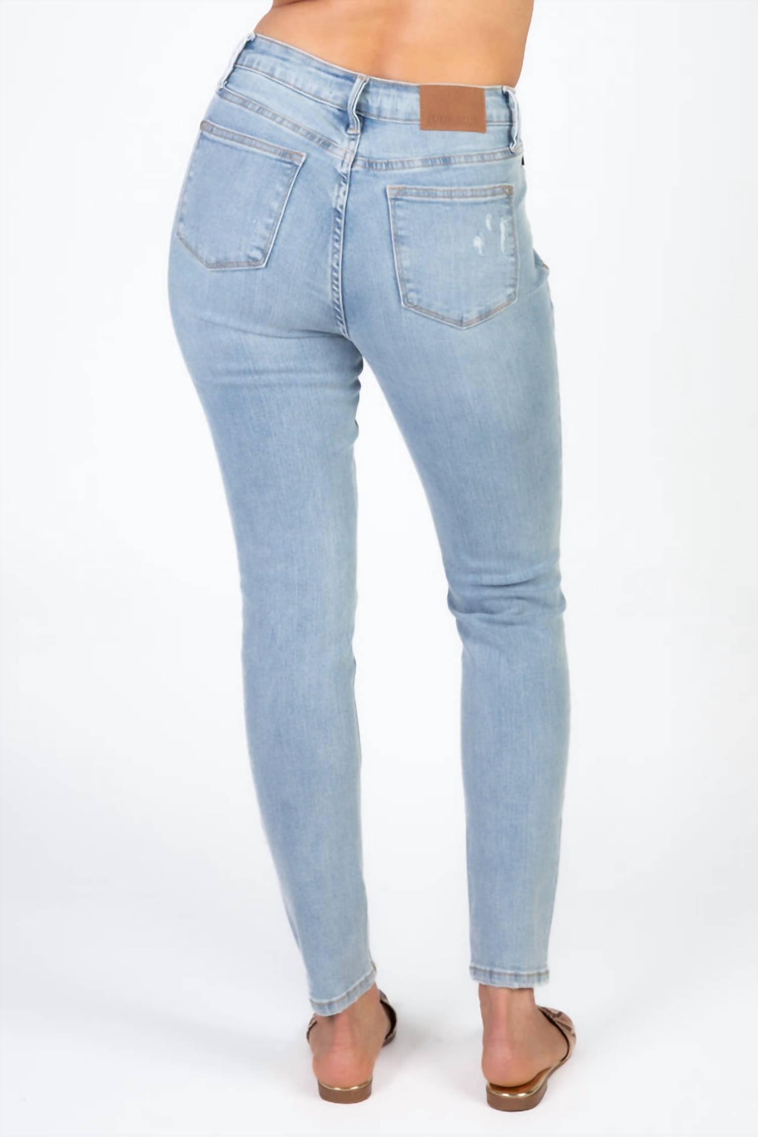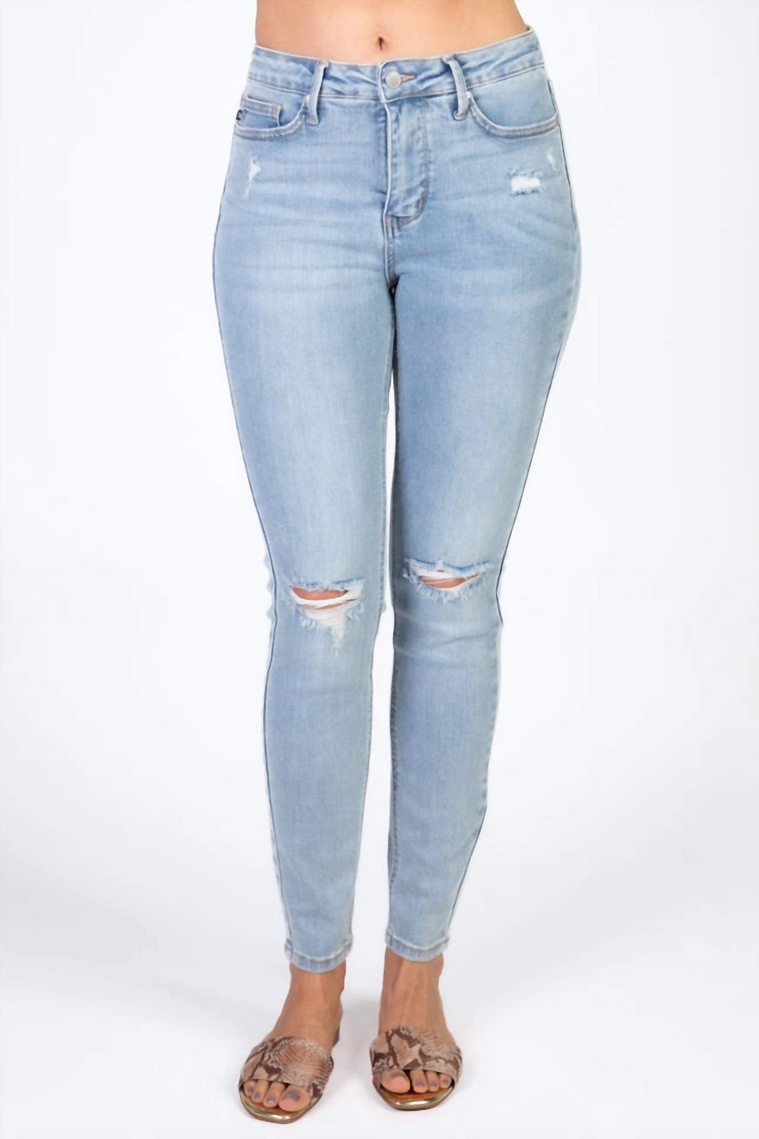 A calça jeans skinny perfeita para usar com suas botas favoritas nesta estação! Descubra a calça jeans Tummy Control Destroy Skinny da Judy Blue, criada para mulheres que valorizam estilo e conforto. Com lavagem clara, esta calça jeans apresenta cintura média, proporcionando um caimento justo com 25 cm de comprimento e 73 cm de comprimento entrepernas. Confeccionada em uma mistura sólida de 91% algodão, 7% poliéster e 2% rayon, ela também oferece bolsos práticos e um fecho de zíper seguro. Com seu design skinny, esta calça jeans é perfeita para criar uma silhueta elegante e moderna.