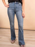 Elevate your style with Judy Blue's Women's Tummy Control Bootcut Jeans, perfect for a summer vacation look. These grey jeans feature a high waist and classic fit with a bootcut leg, enhanced by a stylish side slit and a comfortable zip closure. Crafted from a blend of 91.4% Cotton, 7.4% Polyester, and 1.2% Spandex, they offer a stretchy and comfy feel while maintaining their shape. With a tummy control panel and longer inseam of 32.5 inches, these jeans ensure a flattering fit, making them a streetwear staple.