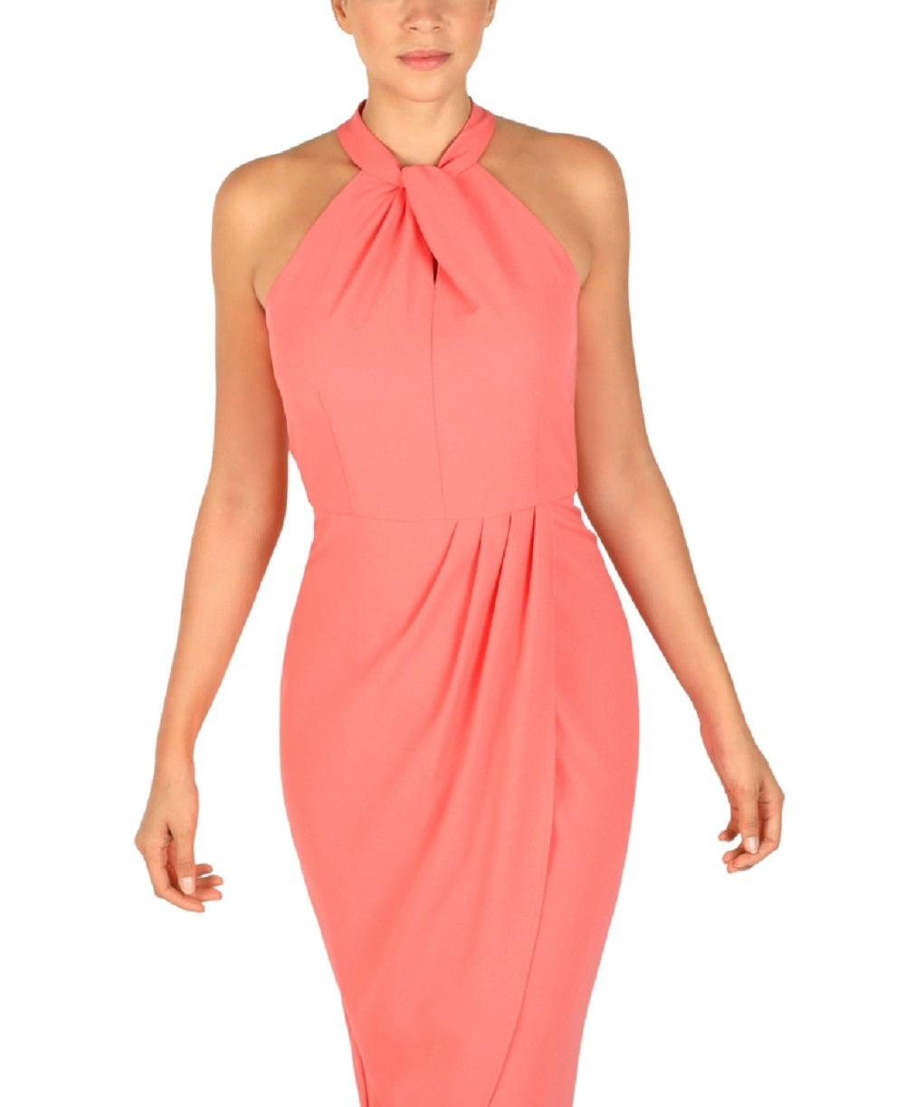 Fecho de zíper nas costas | Importado | Forrado | Crepe Scuba; Elástico e com suporte | Bainha tulipa | Decote halter com detalhe de nó; Silhueta midi | Fale com um estilista e receba aconselhamento gratuito de um especialista online ou em lojas para o seu guarda-roupa