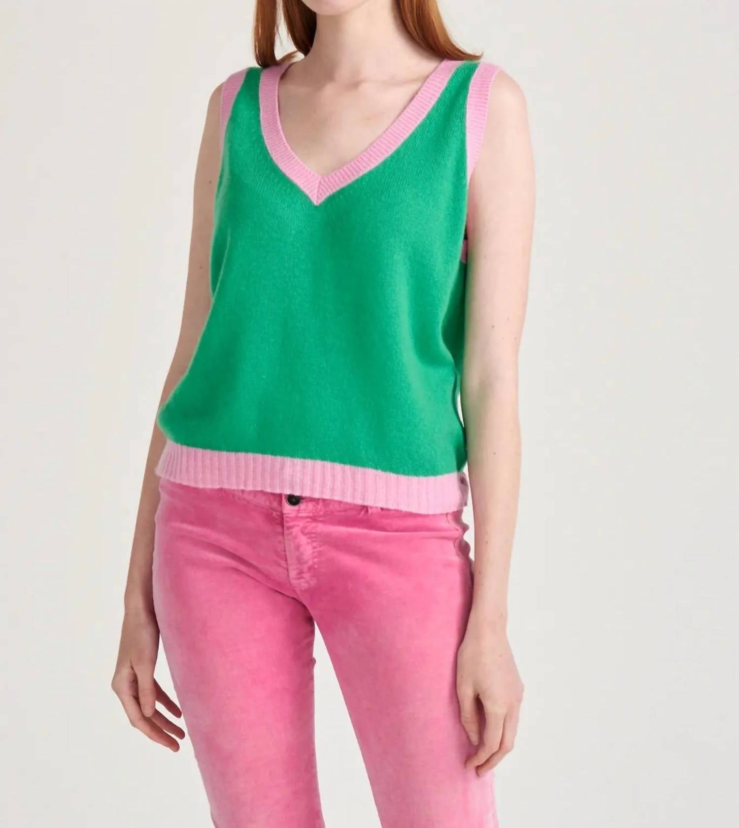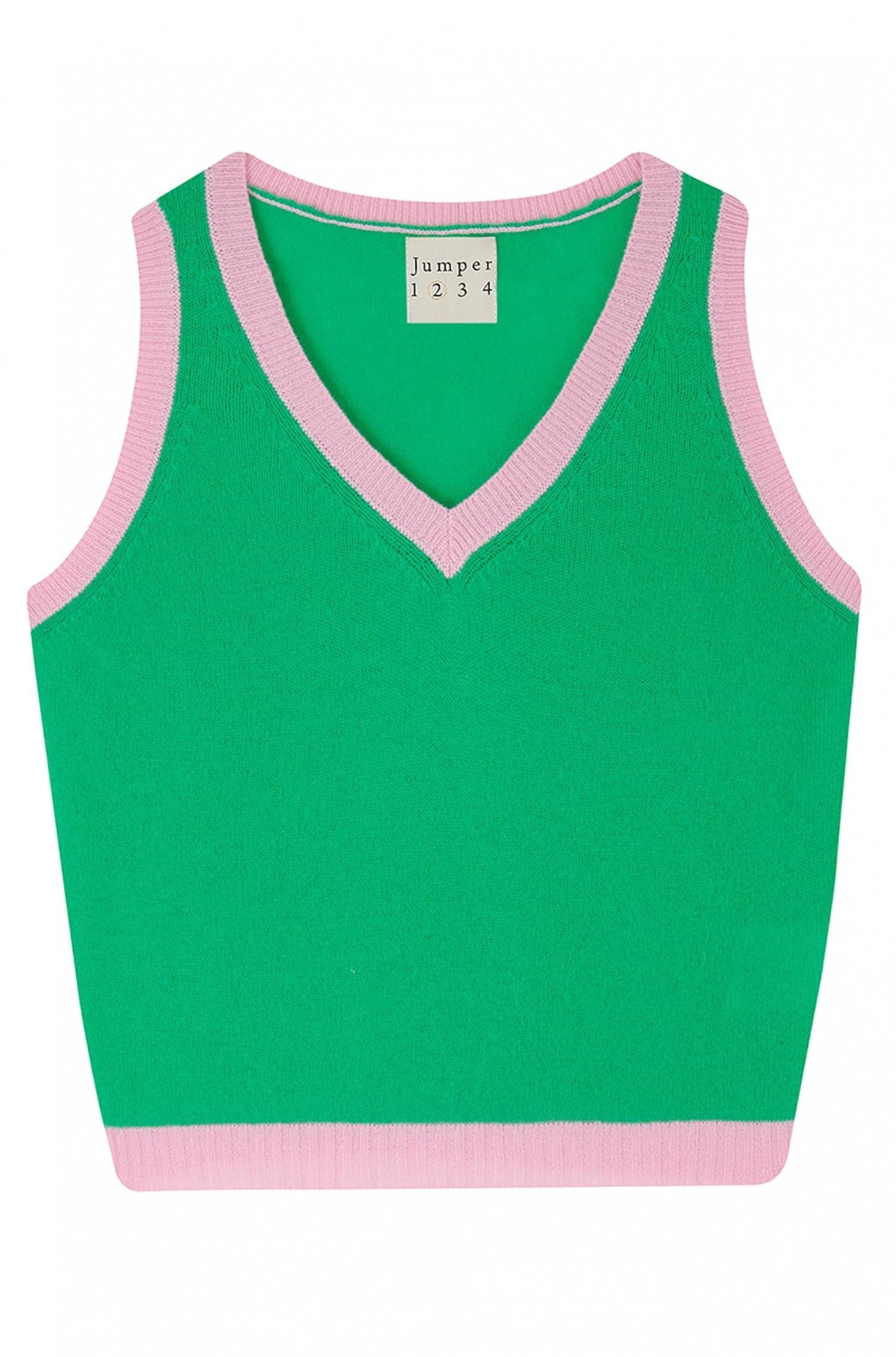Use este suéter com decote em V com seu jeans favorito para o look de outono perfeito. Eleve seu guarda-roupa de viagem com o Colete de Cashmere da Jumper1234, um item essencial para um look primaveril elegante. Este colete sem mangas encanta com um charmoso tom verde com detalhes em rosa contrastantes e um elegante decote em V. Confeccionado com requinte em 100% cashmere, oferece maciez e textura luxuosas. Projetado para ser fácil de usar com fecho pull-on, requer lavagem à mão com detergente não orgânico, remodelação e secagem na horizontal, com ferro frio, se necessário.
