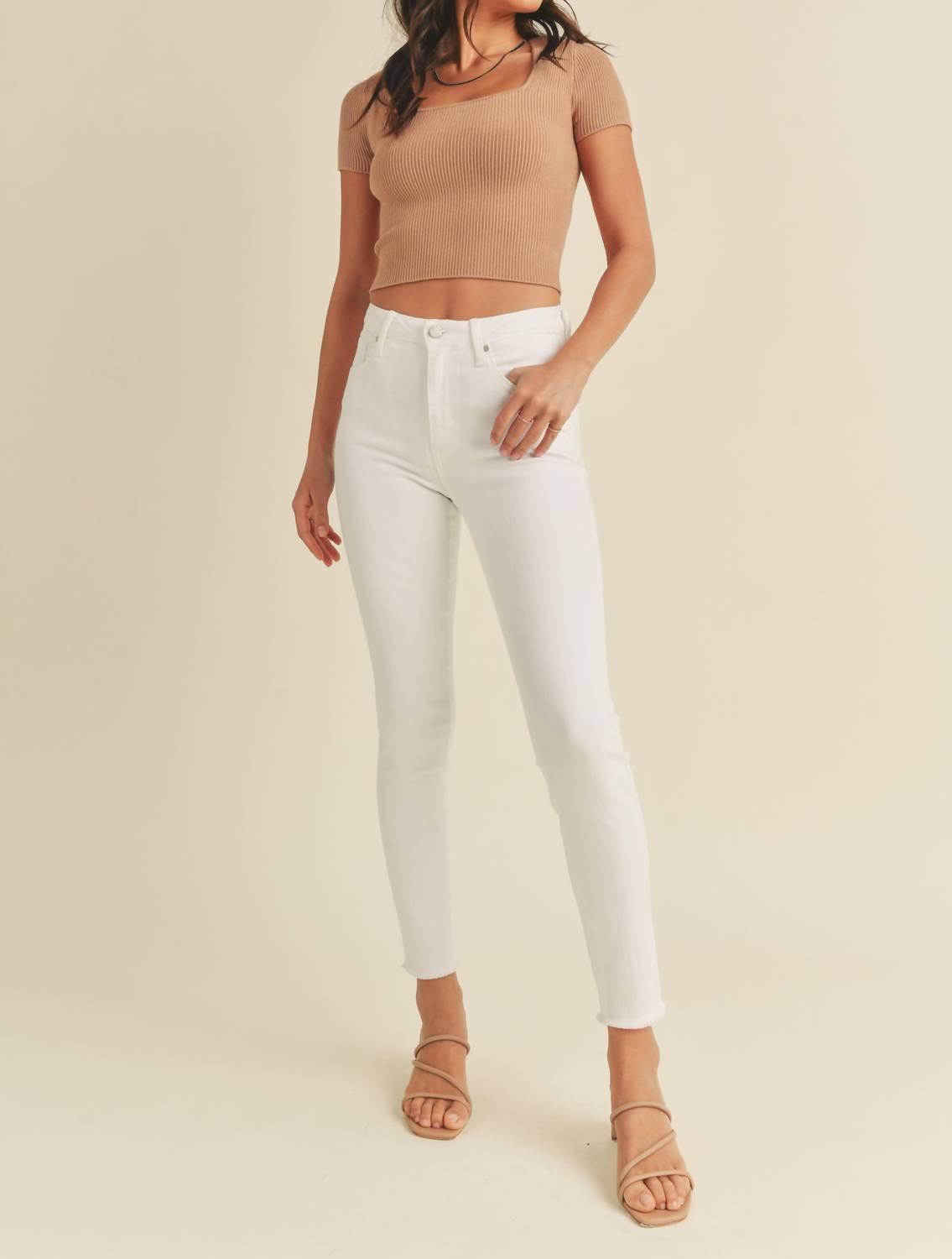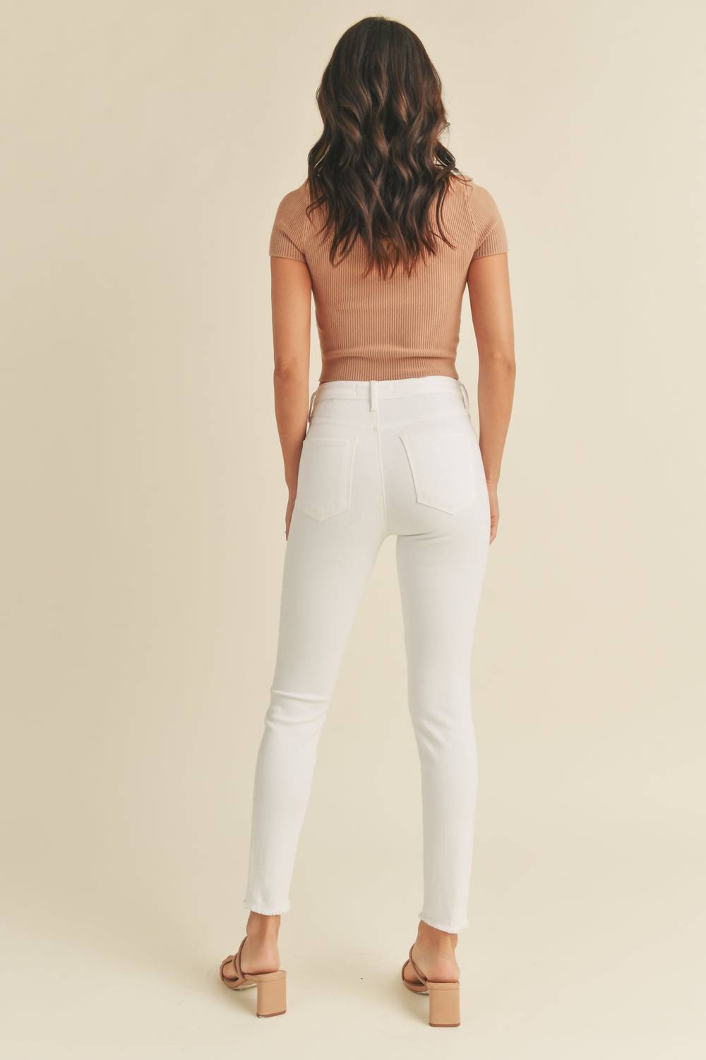 Todo mundo precisa de um bom par de jeans skinny e esse é um estilo que você vai usar sempre, não importa a estação. Um jeans skinny atemporal e perfeito com bainha desfiada para um acabamento muito querido, este jeans é perfeito para qualquer época do ano e a parte inferior com franjas adiciona o toque extra perfeito. Detalhes do produto: Jeans branco. Mini bainha desfiada. Bolsos. Fecho de zíper. Ajuste - Fiel ao tamanho. Modelo - Beth tem 1,68 m, tamanho 6 e veste tamanho 29. Tamanhos - 27, 28, 29, 30, 31. Tecido - 72% algodão, 22% modal, 7% T400, 2% lycra. Cuidados sugeridos - Lavar à máquina em água fria. Cores escuras separadamente, não usar alvejante! Pendurar ou secar no varal. Passar em temperatura baixa. Lavar a seco, se necessário.