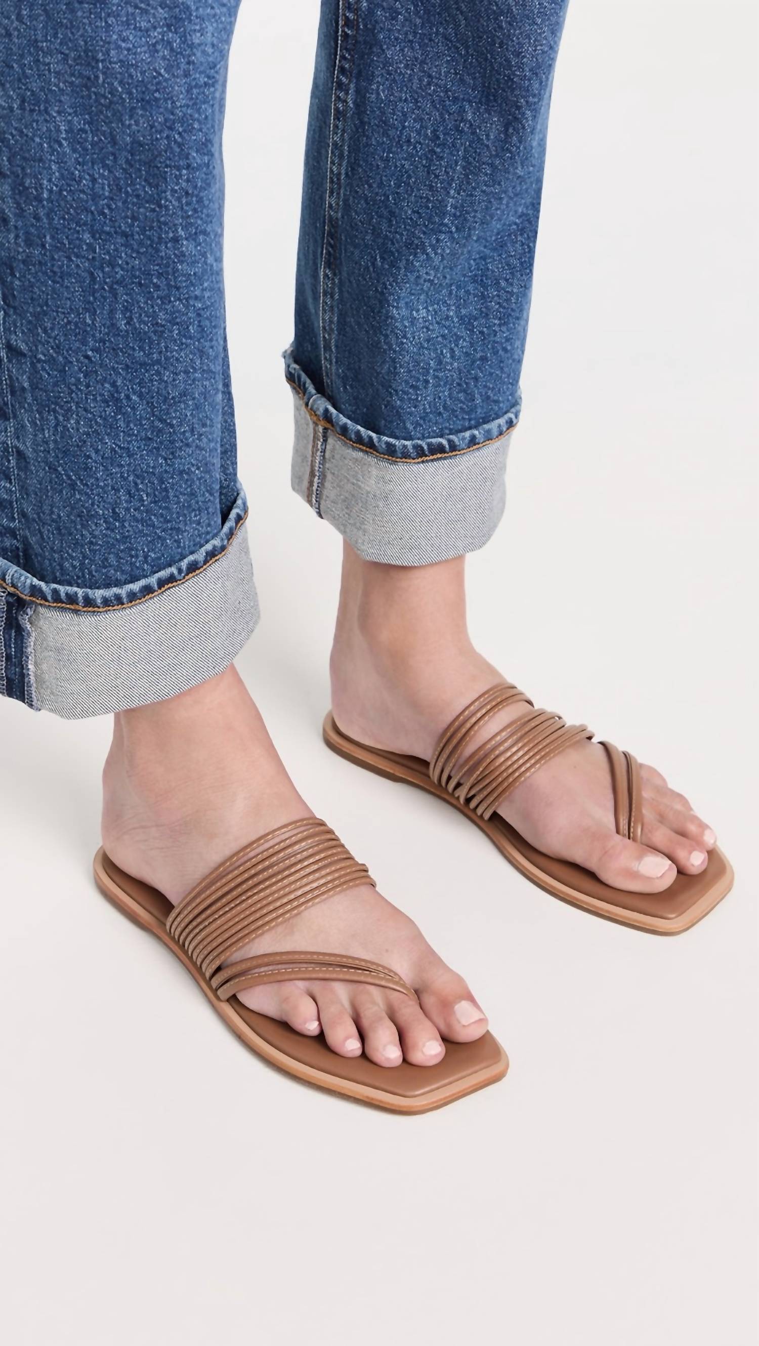 Flowy dresses, cropped pants, and even jumpsuits... this sandal works with them all!Leather: Calfskin. Strappy silhouette. Rigid footbed. Rubber sole. Imported, Brazil. Open toe.